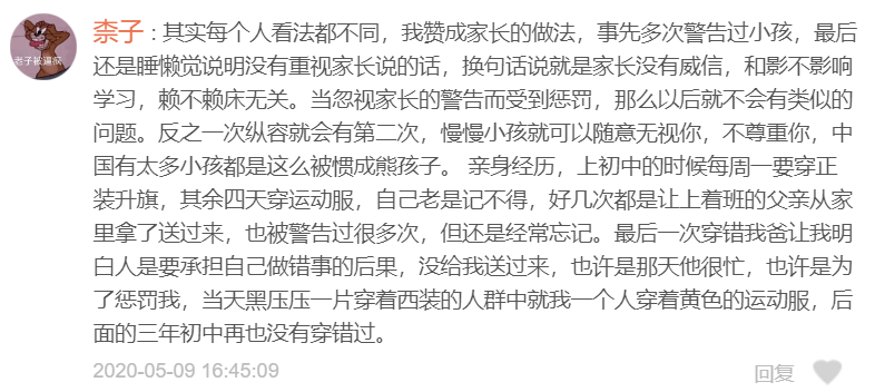 当然这位家长能够一而再再而三地容忍孩子多次赖床,也给予了孩子多次回归正轨的机会、耐着脾气为孩子讲要早起,一切从为了培养孩子的良好习惯出发也是十分值得广大家长借鉴的!