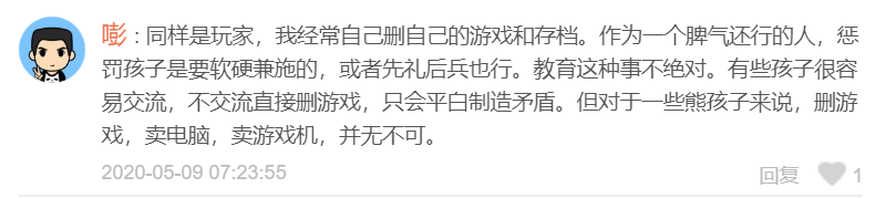 还有的理性地分析不同孩子应该不同处理方法,容易交流的就好好交流,对熊孩子删游戏并无不可。