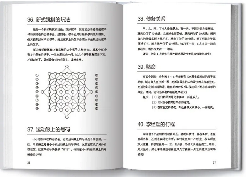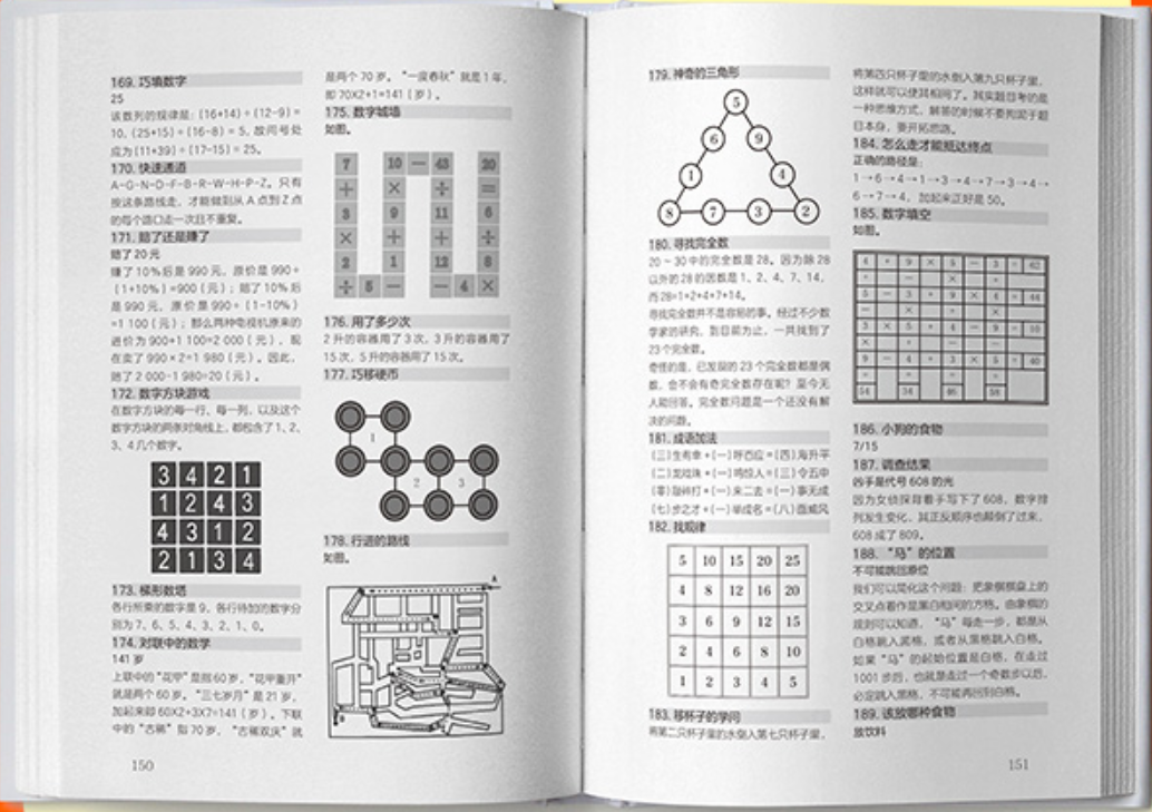 这本书一共精选了183道世界经典数学题目集结成册,分三大板块将图形、逻辑、计算等方面的理论融入形式多样的趣味小游戏中,并逐道解答。