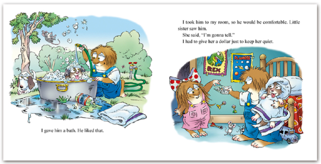 所以,这套绘本不仅有双语启蒙的功能,还全面介绍了一个普通美国孩子日常生活的点点滴滴,是扩展孩子视野不可多得的佳作。
