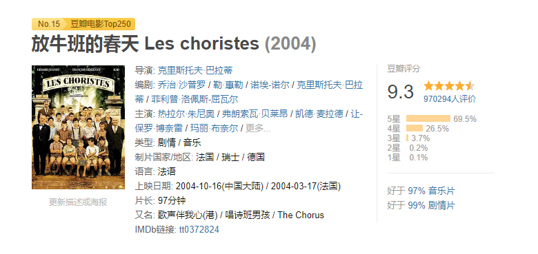 本周为大家推荐一部具有教育代表性的电影「放牛班的春天」